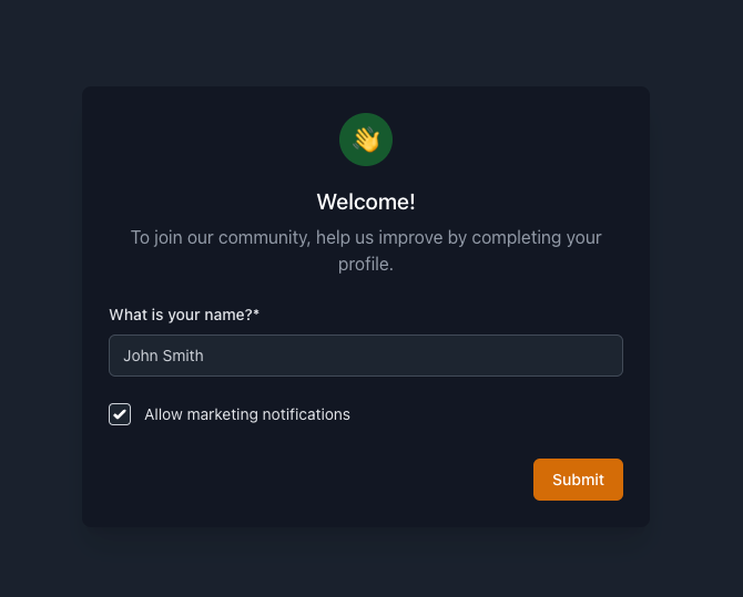 Over time you might add more onboarding fields like "Where did you hear about us?" or "How many people are in your company?".