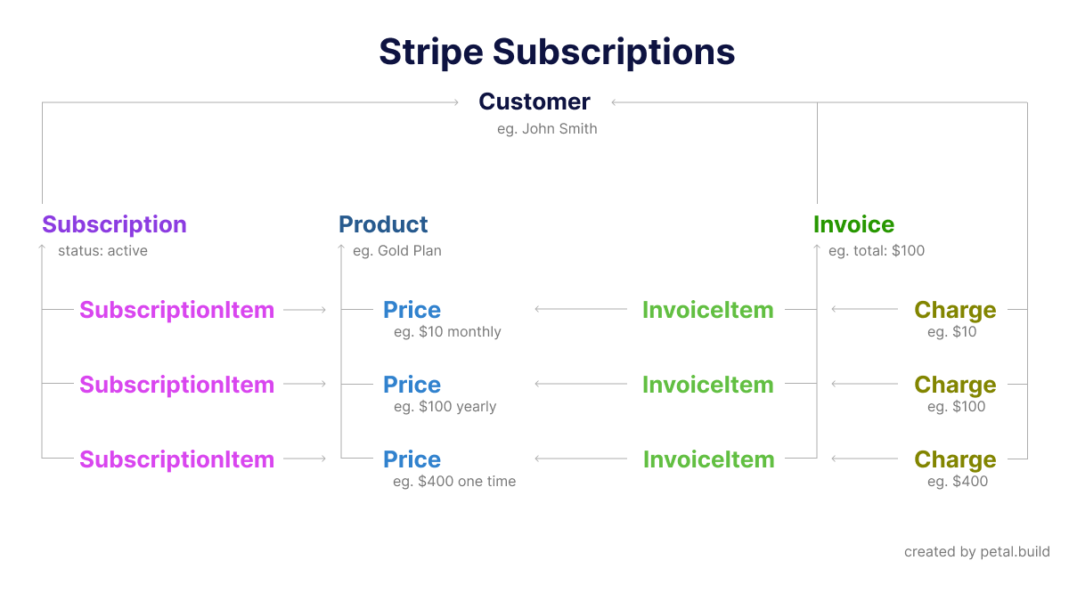 To help understand subscriptions, it's useful to know how Stripe structures its data.