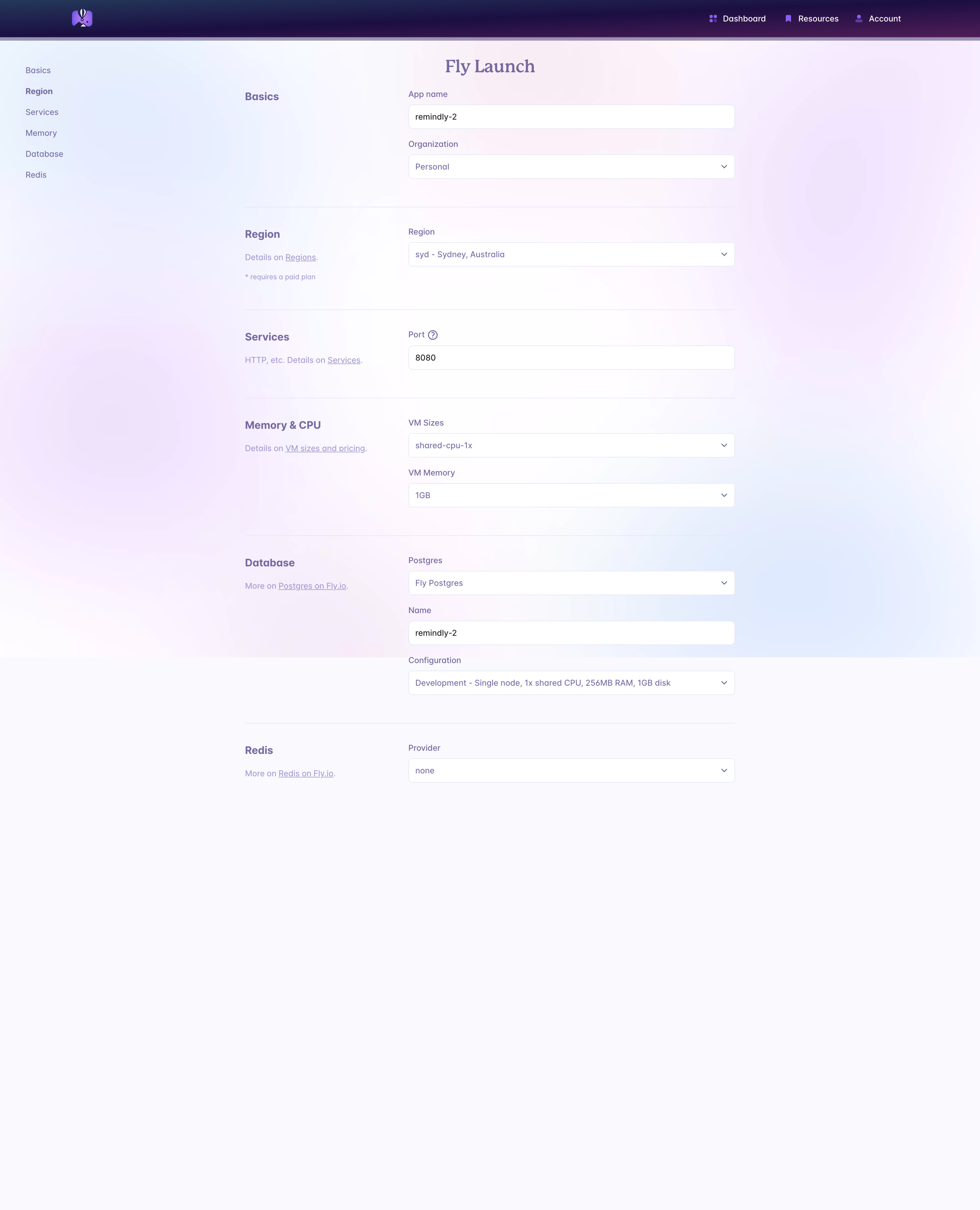 New: fly may prompt you with with a series of default settings and ask if you want to tweak them. Hit Y and it will open your browser with a UI where you can pick/choose settings.
