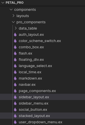 /lib/petal_pro_web/components/pro_components Here you can see the sidebar_layout.ex and stacked_layout.ex files.