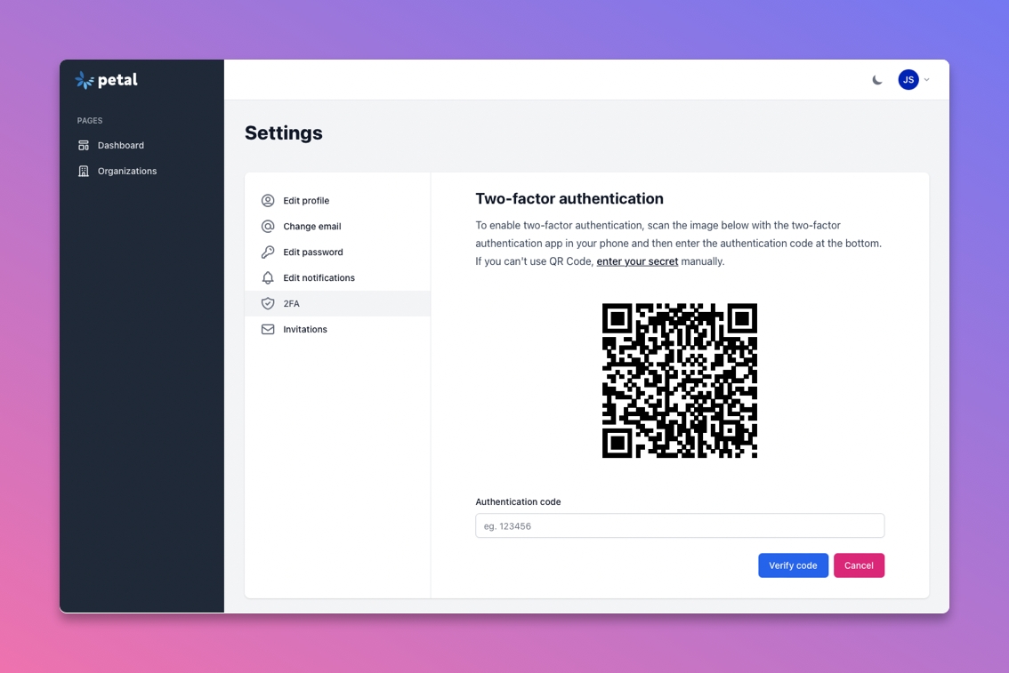 2FA boosts the security of your web application by allowing users to opt into a two-factored sign-in procedure (their ordinary sign-in plus entering a one-time password).