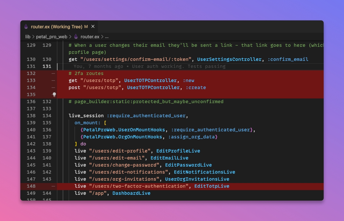 This means users can register and access your web app with only an email. For Petal Pro this is okay, as during onboarding we ask the user to add their name. We also generate a random password for them (every user requires a password as a database rule set by phx.gen.auth). A user therefore can click "Reset password" if they like and choose to use password-based login in the future.