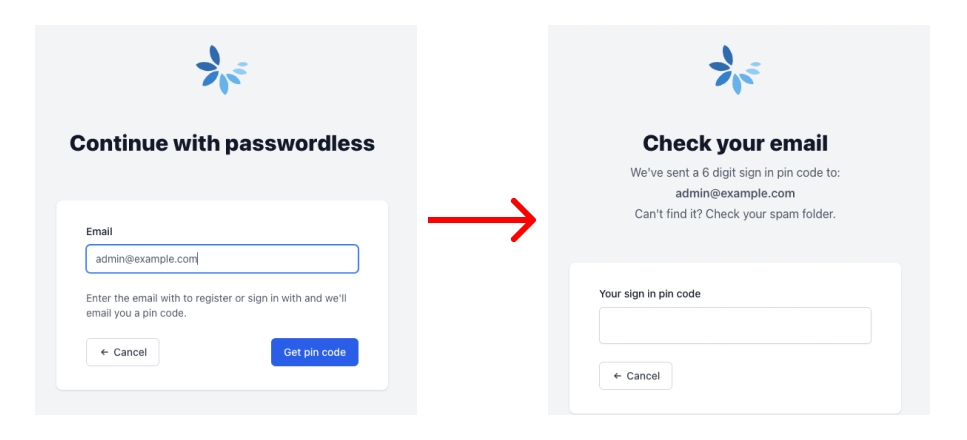 Passwordless allows users to either register or log in with their email address. They get sent a code and use the code as a temporary password. The code expires in a short timeframe and gets deleted if the user enters the wrong code for more than a couple of attempts.