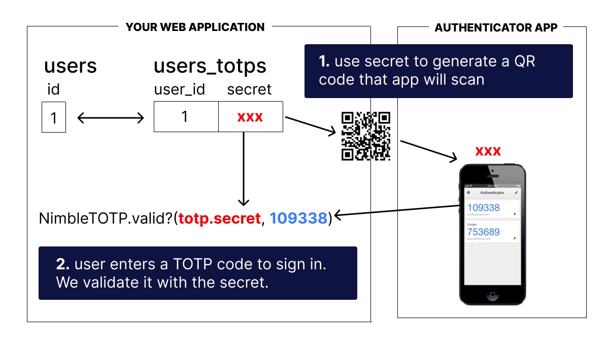 endThe key field is the secret. This is what is passed to the authenticator app and allows the web application to work out which codes are correct.